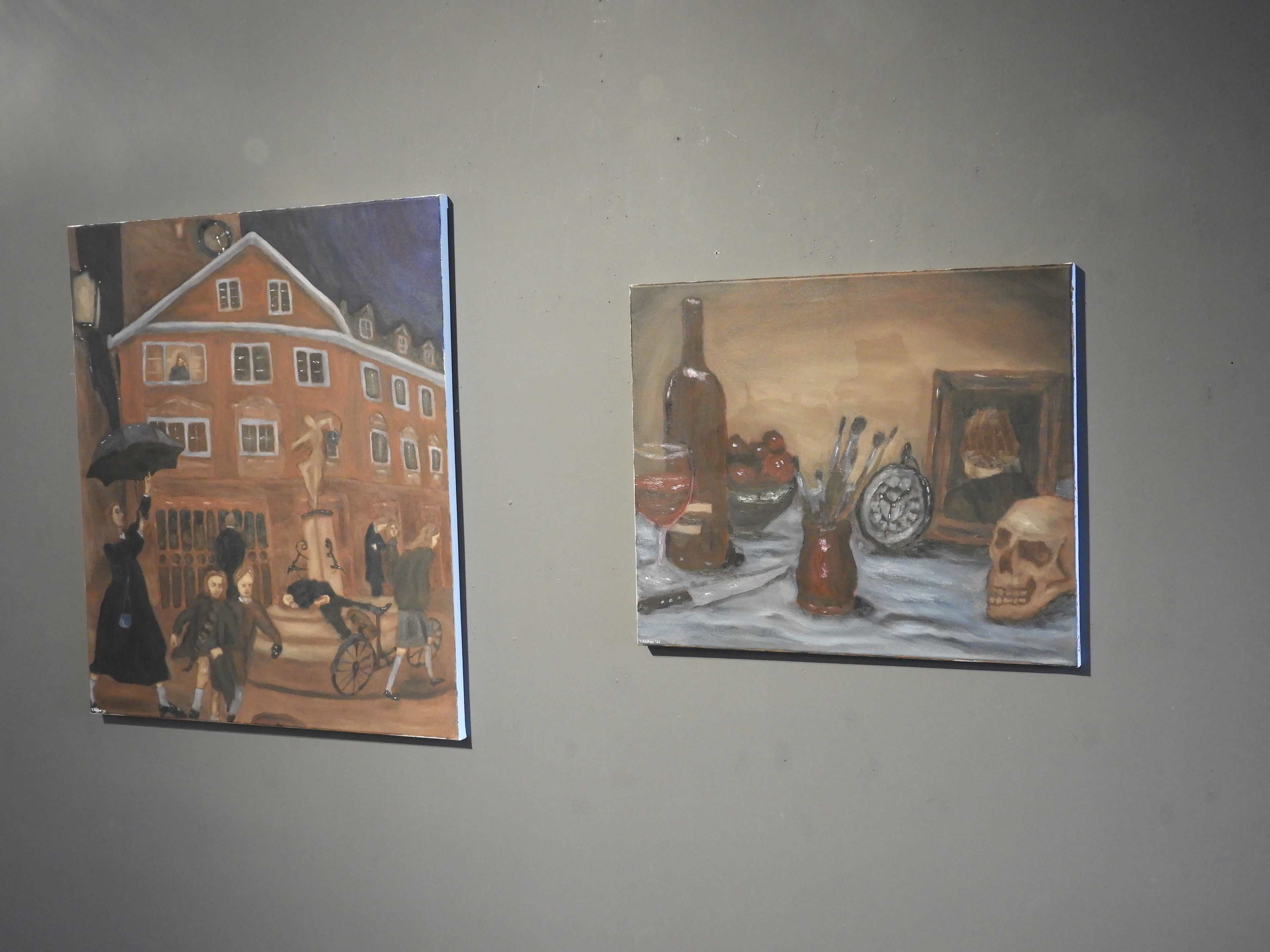 ausgestellte gemälde: "Reminiszenzen eines Träumers" und "Einem Nocturne Lauschend"